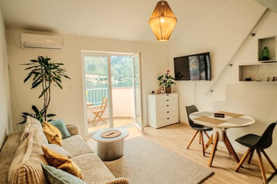Ovaj stan modernog dizajna, potpuno opremljen i spreman za zivot nalazi se u naselju Muo, nedaleko od kotorskog starog grada i na samo 200m od plaze.