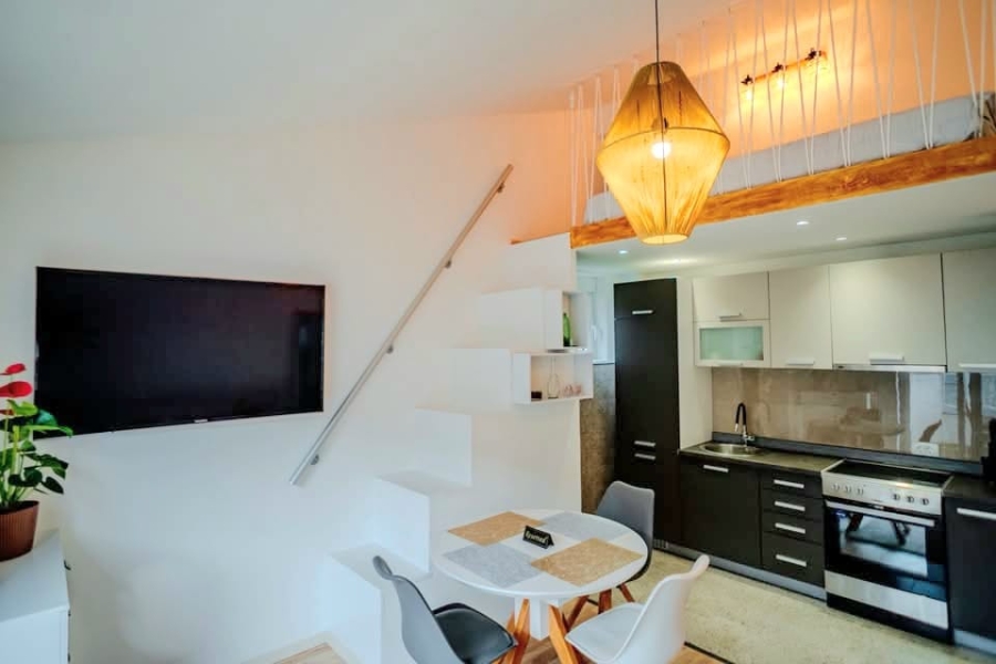 Ukoliko ste ljubitelji fantasticnog pogleda i mirnog zivota ovaj jednosoban stan sa galerijom je savrsen izbor za vas.